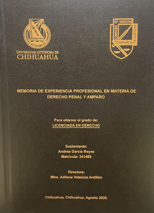 Memoria de experiencia profesional en materia de derecho penal y amparo / Andrea García Reyes; dirección Adilene Valencia Antillón