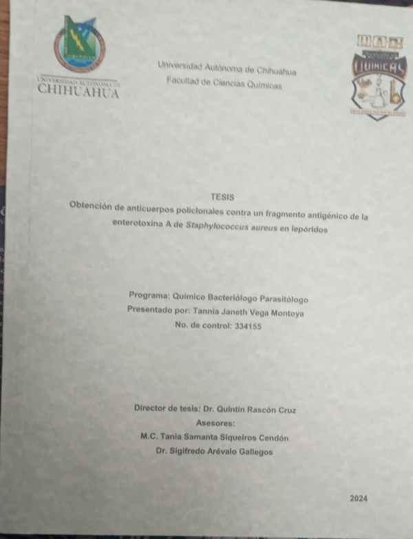 Nota de disertación: Tesis Licenciatura como Químico Bacteriólogo Parasitólogo Universidad Autónoma de Chihuahua, Facultad de Ciencias Químicas 2024