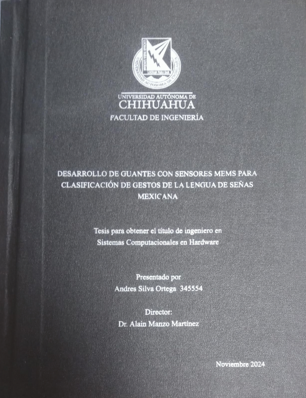 Desarrollo de guantes con sensores MEMS para clasificación de gestos de la lengua de señas mexicana / Andrés Silva Ortega; dirección Alain Manzo Martínez