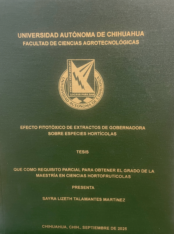 Efecto fitotóxico de extractos de gobernadora sobre especies hortícolas / Sayra Lizeth Talamantes Martínez; dirección Martha Irma Balandrán Valladares; María del Rosario García Mateos; asesoría Ramona Pérez Leal [y otros tres]