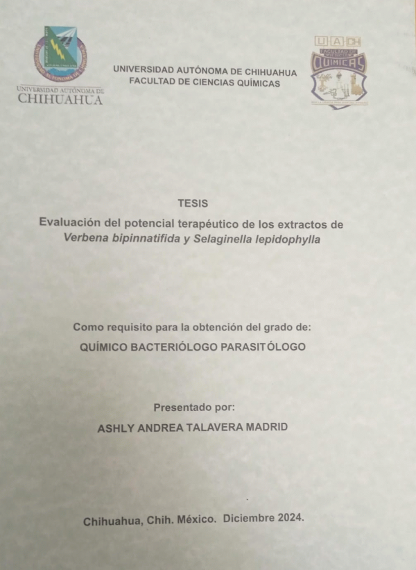 Evaluación del potencial terapéutico de los extractos de verbena bipinnatifida y selaginella lepidophylla / Ashly Andrea Talavera Madrid; dirección Miguel Ángel Flores Villalobos
