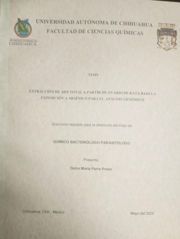 Extracción de ARN total a partir del ovario de rata bajo la exposición a arsénico para el análisis genómico / Dulce María Parra Prado; dirección Blanca Estela Sánchez Ramírez