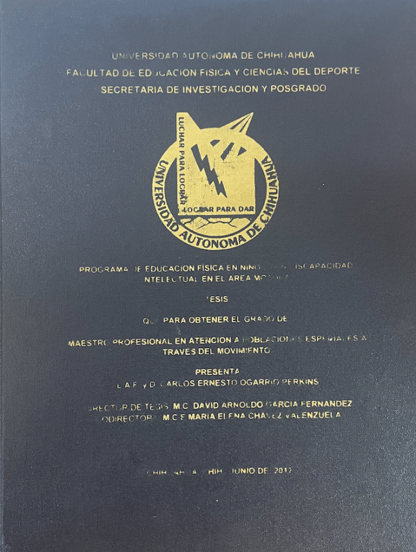 Programa de educación física en niños con discapacidad intelectual en el área motora / Carlos Ernesto Ogarrio Perkins; presidente David Arnoldo García Fernández; codirección María Elena Chávez Valenzuela; secretario Oscar Nuñez Enríquez; vocal Salvador Jesús López Alonso