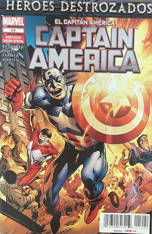 Captain America El Capitán América : héroes destrozados sin poderes parte 2 y 3 no. 4 / historia Ed Brubaker; trazo Alan Davis; tinta Mark Farmer; color Laura Martín