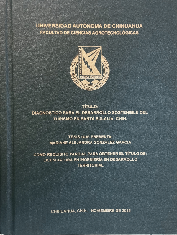Diagnóstico para el desarrollo sostenible del turismo en Santa Eulalia, Chih. / Mariene Alejandra González García; dirección Griselda Vázquez Quintero; codirección Emily García Montiel; asesoría Myrna C. Nevárez Rodríguez, María Cecilia Valles Aragón, César Guillermo García González
