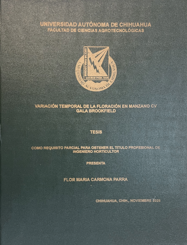 Variación temporal de la floración en manzano cv gala brookfield / Flor María Carmona Parra; direción Oscar Cruz Álvarez; codirector Antonio Martínez Ruíz; asesoría José Luis Jacobo Cuellar, Dámaris Leopoldina Ojeda Barrios