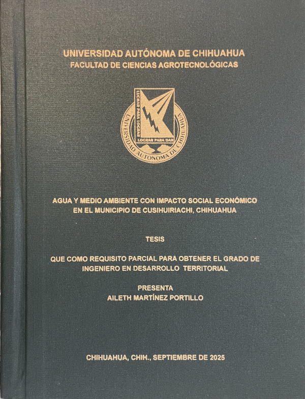 Agua y medio ambiente con impacto social económico en el munucipio de Cusihuiriachi, Chihuahua / Aileth Martínez Portillo; dirección Fernando Arredondo Ruíz; asesoría Hazel Eugenia Hoffman Esteves, Carlos Baudel Manjarrez Domínguez, César Arturo Berzoza Gaytán