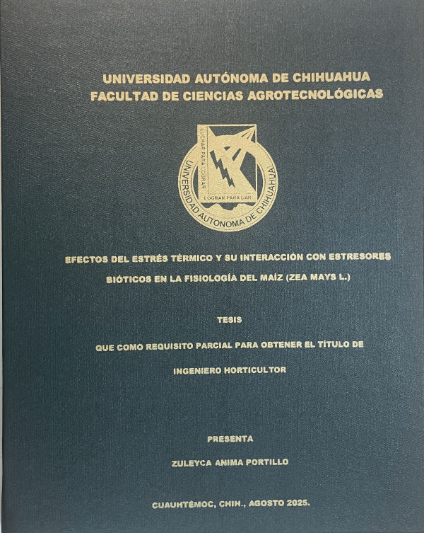 Efecto del estrés térmico y su interacción con estresores bióticos en la fisiología del maíz (sea mays l.) / Zuleyca Anima Portillo; dirección Elizabeth Villalobos Pérez; asesoría Miriam Jazmín Aguilar Delgado, María Noemi Frías Moreno, Ricardo Aarón González Aldana