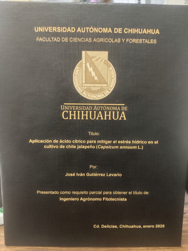 Aplicación del ácido cítrico para mitigar el estrés hídrico en el cultivo de chile jalapeño (Capsicum annuum L.) / José Iván Gutiérrez Levario; dirección Alejandro Palacio Márquez; asesoría Carlos Abel Ramírez Estrada