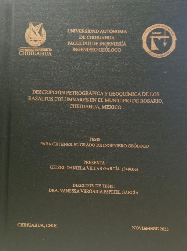 Descripción petrográfica y geoquímica de los basaltos columnares en el municipio de Rosario, Chihuahua, México / Gitzel Daniela Villar García; dirección Vanessa Verónica Espejel García