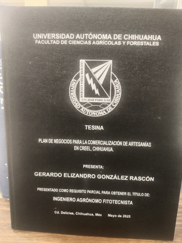 Plan de negocios para la comercialización de artesanías en Creel, Chihuahua / Gerardo Elizandro González Rascón; dirección Ruth Elizabeth Pando Fierro; asesoría Jerónima Antonieta Pérez